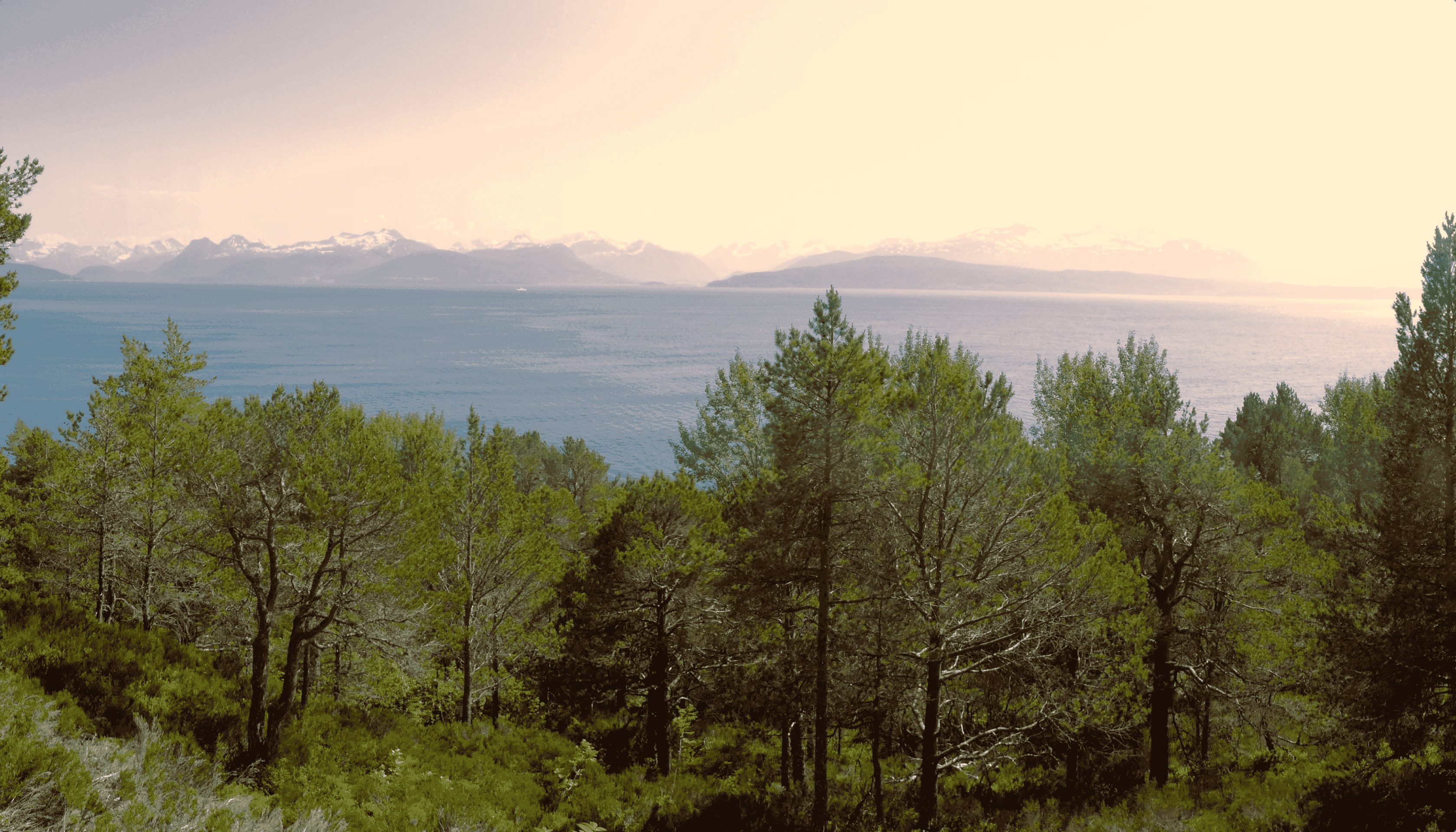 — Utsyn fra Hauksikt mot vest utover Storfjorden.
